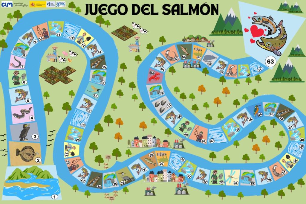 Developed by the Free Flow Lab, “El Juego del Salmón” is an exciting game where salmon (the players) have to follow a river course (the game board) to complete their migration and return to their spanning grounds to complete their life cycle.